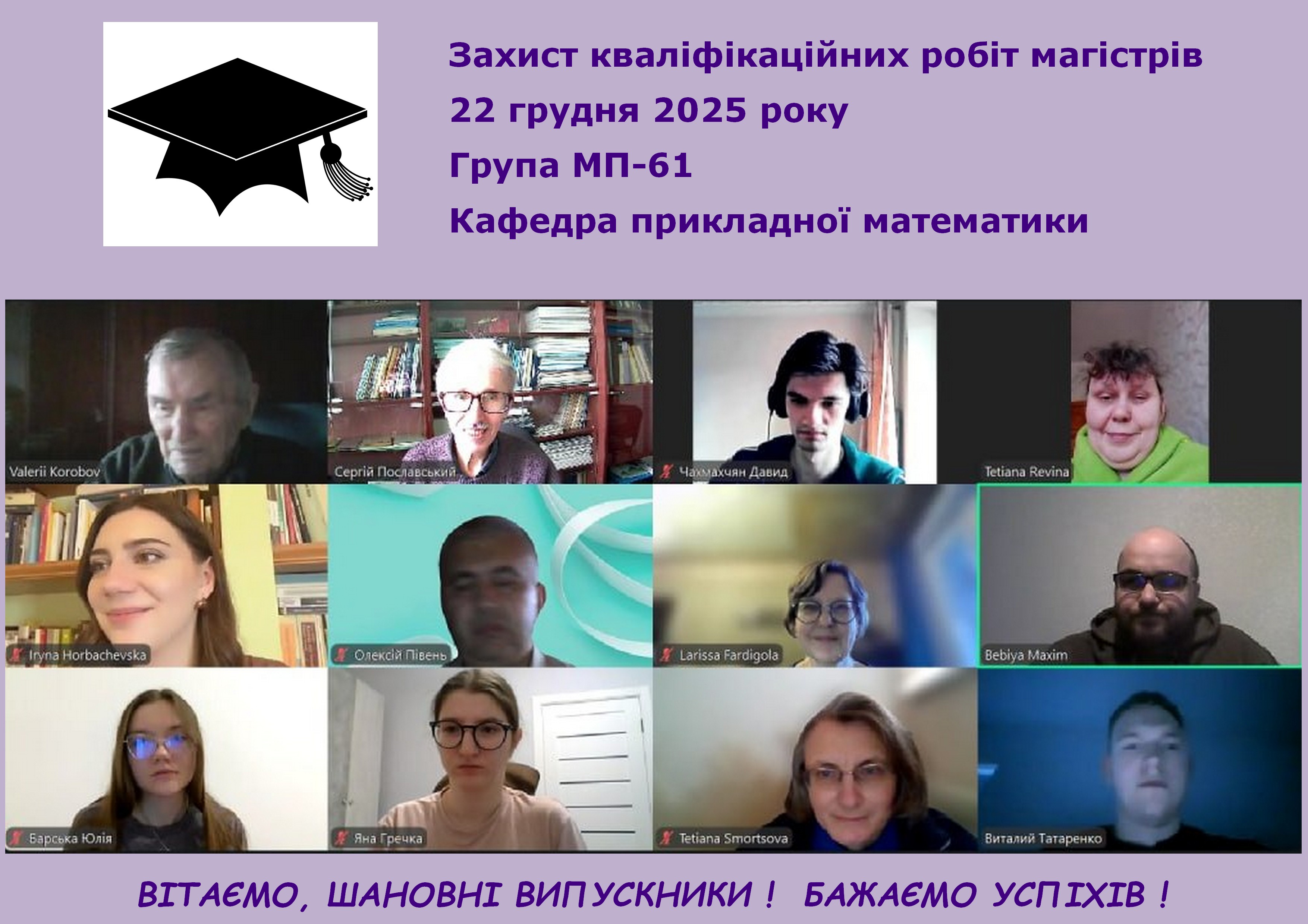 • 2 грудня 2025 р. о 18:00 відбудеться засідання наукового семінару кафедри прикладної математики.